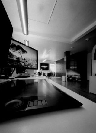 Das Zeitungsprojekt „Die Camera obscura im Atelier“ vereint 52 Ateliers und über 60 Künstlerinnen und Künstler aus der Metropolregion Nürnberg. Fotografiert wurden die Ateliers mit der Robert Rigby-Lochkamera auf 4x5inch Schwarz-Weiß-Film. Belichtungszeiten zwischen 10 Minuten und einer Stunde.